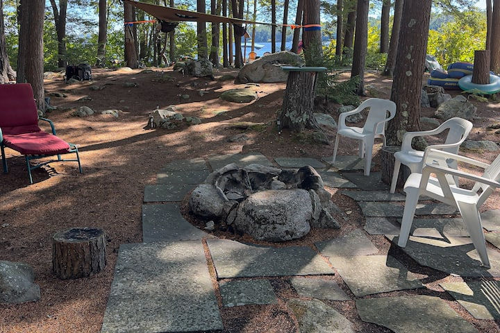 In blueberry season, the island becomes a living pantry. Ripe berries growing everywhere, ready to be picked and eaten as you wander. Loons call across the lake, eagles soar overhead, and flying squirrels move quietly through the trees. Thanks to constant light breezes and the absence of standing water, the island is remarkably mosquito-free, allowing you to stay present with the landscape instead of retreating from it.