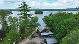 Your Escape begins on the gentle shores of Long Lake, anchored by the quiet charm of Ricker’s Resort. This eight-acre lakeside property serves as your gateway to the island, offering a seamless transition between land and lake. Whether you arrive to Pine Island from the town docks, your own shoreline, or directly from Ricker's, your stay is rooted in close-by access, comfort and ease.